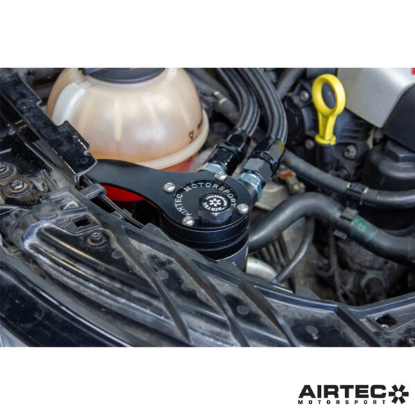 AIRTEC Motorsport’s solution to developing a catch can kit specifically for the S1 model utilises the available space to integrate seamlessly within the engine bay. It features a high-quality billet machined bracket, finished in powder-coated satin black, which allows the catch can to attach neatly in place.