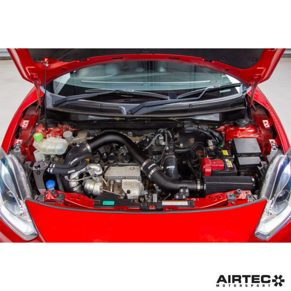 This freer-flowing induction kit replaces the car’s original air box and restrictive intake set up. It features a large, cotton AIRTEC Motorsport filter that significantly improves the car’s breathing by increasing the amount of air it can take in, therefore increasing power, performance and sound, thanks to a louder induction note and improved engine and turbo sound.